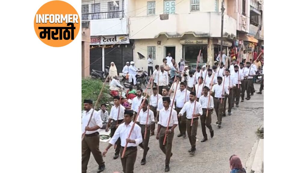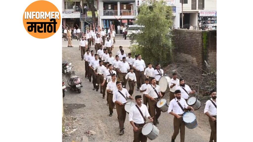 सोनई — विजयादशमीचे अवचित साधून राष्ट्रीय स्वयंसेवक संघातर्फे सोनई शहरात शनिवारी संघाचे पथसंचालन करण्यात आले. स्वयंसेवकाचे शिस्तबंध पथसंचालन व ऊस्थाह संचालन पाहण्यासाठी सोनई कारांना व परिसरातील नागरिकांना संघाच्या गणवेशात स्वयंसेवकांना दिल्या जाणाऱ्या प्रशिक्षणाची आणि देशभक्तीची झलक पाहायला मिळाली. यादरम्यान शस्र पूजन व संचालन सहभागी झालेल्या स्वयंसेवक वर महिला, नागरिकांनी जेसिबी द्वारे पुष्पांजली उधळण करून ठिकठिकाणी स्वागत ही करण्यात आले. पथसंंचलन मार्गावर घोषवादनाच्या निनादात निघणारे हे संचलन पाहण्यासाठी नागरिकांनी रस्त्यालागत गर्दी केली होती. तालुक्याचे कार्यवाहक सुनील सावंत यांच्या वतीने मोठ्या संखेच्या उपस्थित संचालन करण्यात आले.. संचालनाची सुरुवात सोनई, महादेव मंदिर पासून ते महादेव मंदिरापर्यंत समाप्त करण्यात आली. विठ्ठल मंदिर, छत्रपती शिवाजी महाराज चौक, स्वामी विवेकानंद चौक, छत्रपती संभाजी चौक, महावीर पेठ, हलवाई गल्ली, डॉक्टर बाबासाहेब आंबेडकर चौक, बस स्थानक, छत्रपती शिवाजी महाराज पुतळा स्मारक, राहुरी रोड, श्री रेणुका माता कमान या मार्गे संचलन करण्यात आले.यामध्ये विविध स्तरातील नागरिक सामील झाले होते. पोलीस बंदोबस्त सपोनि. विजय माळी यांनी त्यांच्या सहकारी मार्फत चोख सुरक्षा ठेवण्यात आली होती.